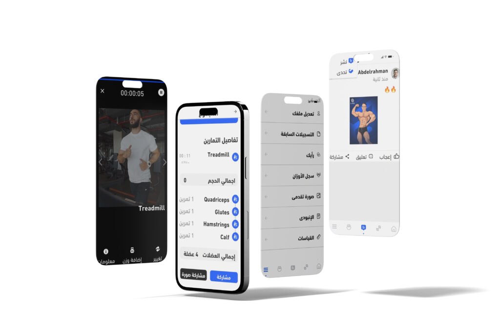 تقدر تتابع تقدمك عن طريق الأبلكيشن من ناحية العدات و الأوزان وقياسات الجسم والصور الخاصة بيك