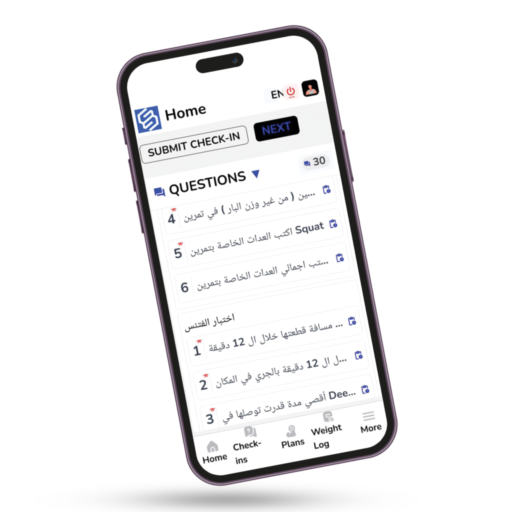 فورم اختبارات : وهنا بطلب منك شوية اختبارات علشان أقيم مستواك سواء اختبارات للقوة أو اللياقة البدنية علشان أحطلك أنسب برنامج لمستواك.